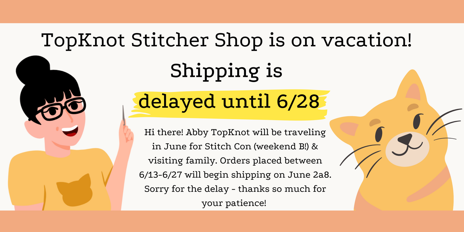 A promotional image featuring a cross-stitch kit called 'Float' by Plum Street Samplers, depicting a butterfly design on a fabric piece, surrounded by small wooden spools of thread and decorative elements.