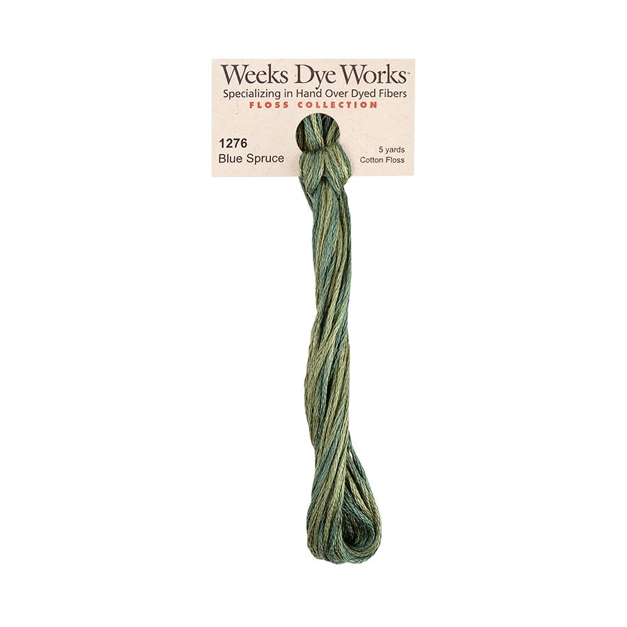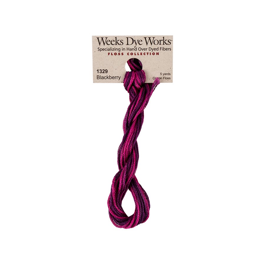 Weeks Dye Works hand over-dyed, 6-stranded Egyptian cotton fiber was Weeks Dye Works' initial product line. It was introduced into the cross-stitch and embroidery market in 1994, and remains their largest line with the most colors available. The colors are variegated enough to be noticeable, yet subtle enough to blend naturally.