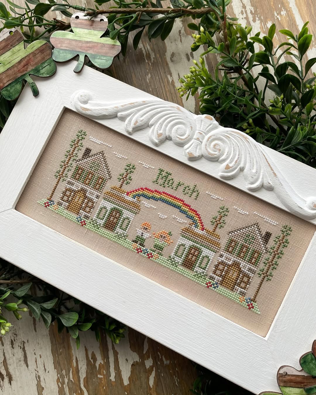 The Monthly Mini Village series is a 12 part series stitched entirely in Classic Colorworks threads. This cute little town of heart-covered red and pink houses is perfect for February... and is this a neighborhood meet-cute?