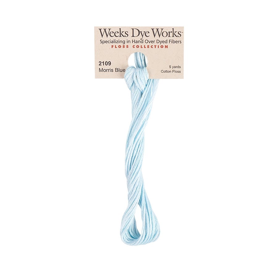 Morris Blue 2109 - 5 yards of Weeks Dye Works Hand-Dyed 6-strand 100% cotton embroidery floss. This high-quality, hand-dyed embroidery thread is perfect for cross-stitch, needlepoint, and other embroidery projects. The image closely represents the floss, but please note that slight variations may occur due to dye lot differences and monitor display settings. Add this unique, vibrant floss to your collection for beautifully detailed stitching.