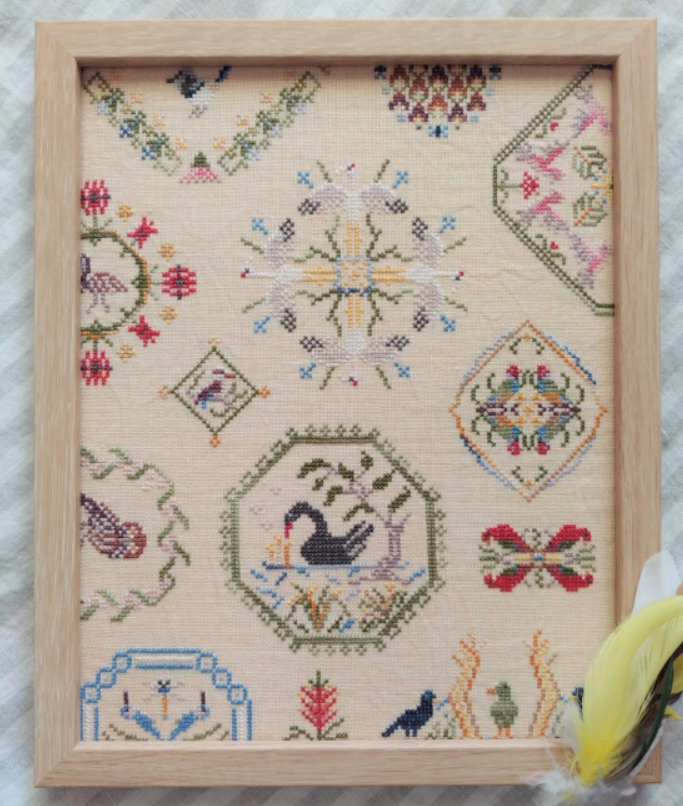 Stitched in Cottage Garden Threads and DMC, with full DMC and overdyed cotton (Weeks, GA, CC) conversions provided. Thread packs available separately.