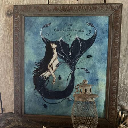 The Cosmic Mermaid is stitched on Mermaid Soul 30 count linen, available separately.